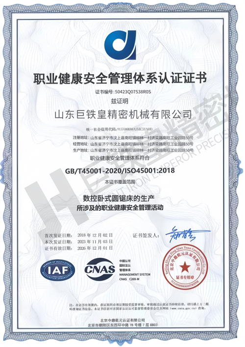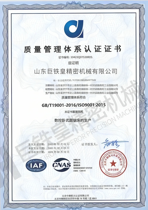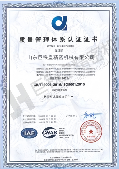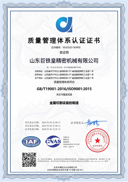 山東巨鐵皇精密機械有限公司主要致力于高速金屬圓鋸機、高速金屬切管機、全自動帶鋸床等加工設備的設計制造與銷售。